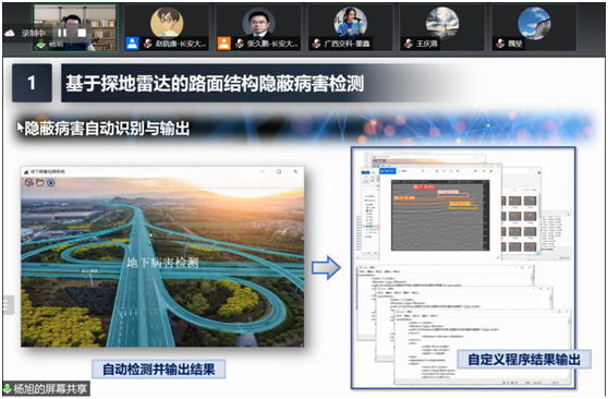 杨凯以“机场飞行区道面隐性病害检测与评估”为题,结合实际工程案例介绍了飞行区道面隐性病害检测方法及处治方案,指出了探地雷达检测方法存在问题和建议。钟新然以“机场道面隐性病害检测与数字化管理解决方案”为题,介绍了机器人和人工智能相关技术在机场道面检测方面的研究成果与应用案例。王浩以南宁吴圩机场为背景分享了水泥道面半刚性基层隐性病害的检测方法及应用技术。杨旭以“道路隐蔽病害自动化检测识别和三维模型可视化探讨”为题,分享了基于探地雷达的结构隐性病害自动化检测识别方法、分析评价技术,探讨了隐性病害三维模型可视化方案。成高立结合工程案例,介绍了注浆技术在基层隐性病害处治中遇到的问题,围绕注浆原材料性能、配合比以及修复质量提升等方面提出了建议。