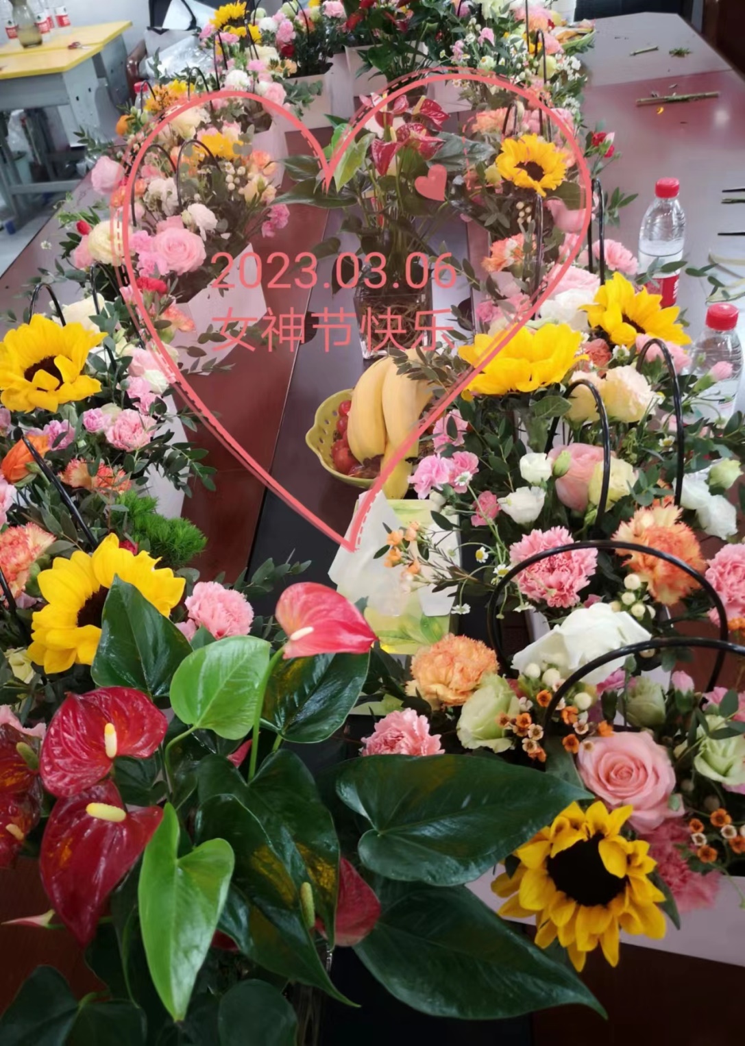 活动开始,花艺师为大家简单介绍了插花的基本知识、常用花材以及插花工具的使用,并现场演示了插花的顺序以及方法。在接受短暂的培训后大家纷纷动起手来,不一会功夫就创作出一幅幅错落有致艺术感满分的作品,活动在老师们相互学习、拍照和欢声笑语中结束,每位女教工都手捧鲜花愉快离开。