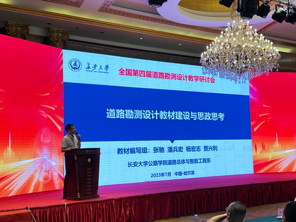 2023年7月26日至27日,第四届道路勘测设计教学研讨会在哈尔滨召开。道路总体与智能工程系张驰教授、贾兴利教授、潘兵宏副教授参加教学研讨会并做报告。