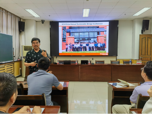 2023年7月25日下午马中国教授在校本部交通科技大厦601会议室为买球体育师生做了主题为“美国土木工程的最新发展”的学术报告。会议由桥梁工程系副主任周勇军教授主持。马教授围绕土木/结构工程的特点、历史发展、美国土木工程的就业形式、美国桥梁工程的现状及发展趋势等几个方面进行了详细阐述。报告结束后马教授就大家所关心的土木工程新型材料研究、有限元分析软件的使用、基础工程发展等问题进行了互动交流。本次报告内容深入浅出,学术氛围浓厚,讲解通俗易懂,引起了在座师生的极大兴趣。