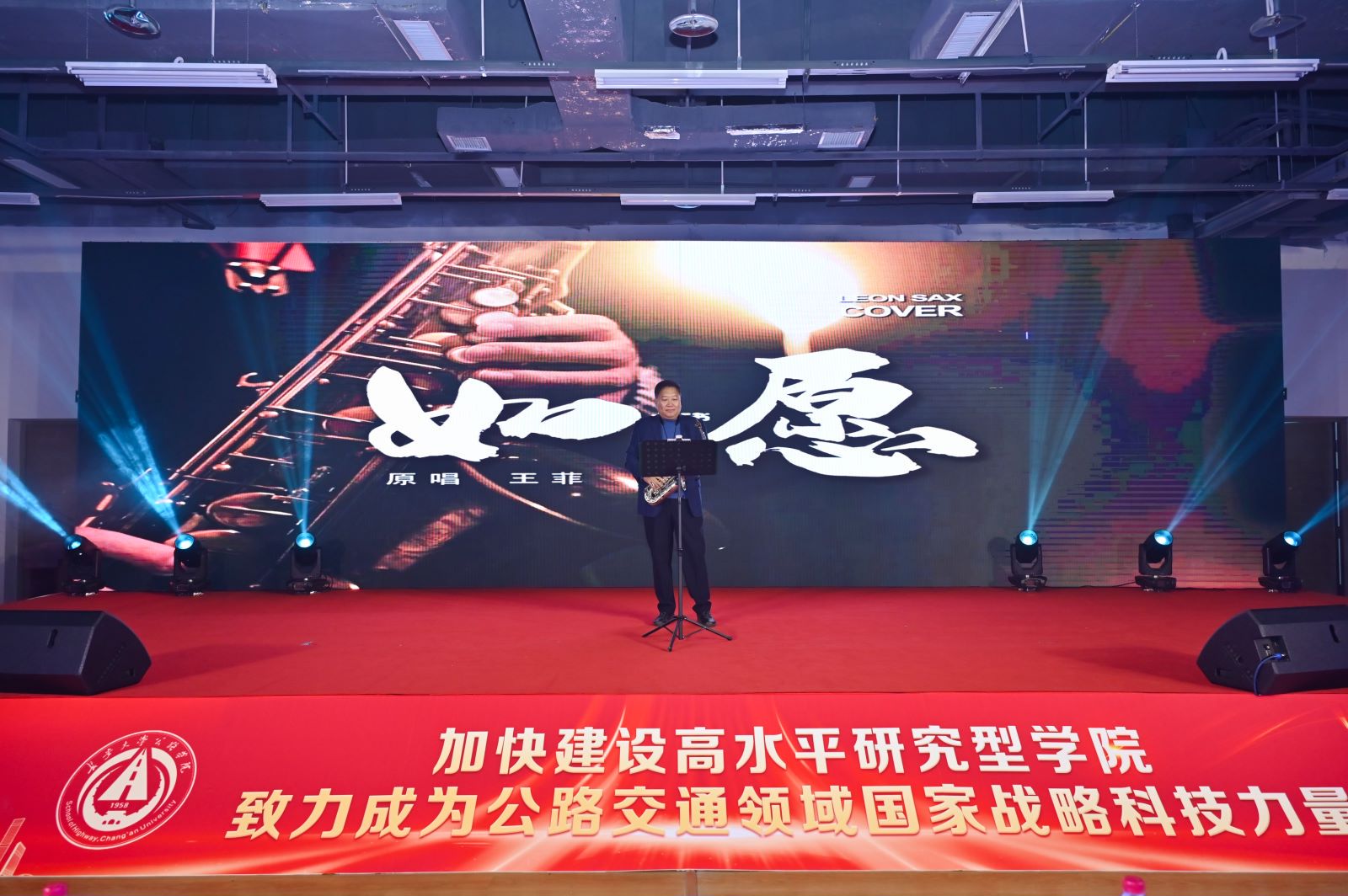 东山欢言酌春酒,明朝有意抱琴来。张景涛老师带来萨克斯独奏《如愿》,谨以此曲致敬买球体育官方网站六十春秋筚路蓝缕艰苦创业的引路前辈们,并与全体教职工共勉。萨克斯乐声低沉悠扬,音色通透富有磁性,指尖翻转,娓娓流淌着美好的祝愿。