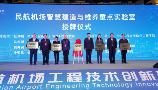 开幕式上,任辉启、马志刚、韩开兴和沙爱民共同为买球体育官方网站牵头组建的“民航机场智慧建造与维养重点实验室”揭牌,为共建单位代表授牌。