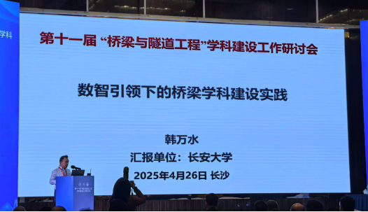 2025年4月25日至27日,第十一届桥梁与隧道工程学科建设研讨会在湖南长沙成功召开。会议主题是“新时代·新挑战·新机遇:全球视野下桥梁与隧道工程学科建设与创新发展”。此次会议由中南林业科技大学主办,吸引了国内外300多名专家学者、行业精英及高校代表参与。买球体育官方网站桥梁工程系共9位教师代表参加了会议,深度融入学术交流与学科发展探讨。韩万水副院长在大会上作题为“数智引领下的桥梁学科建设实践”的专题报告,分享了我国桥梁工程分析软件的建设、发展历程与买球体育官方网站的研发、实践经验,引发与会者热烈反响。