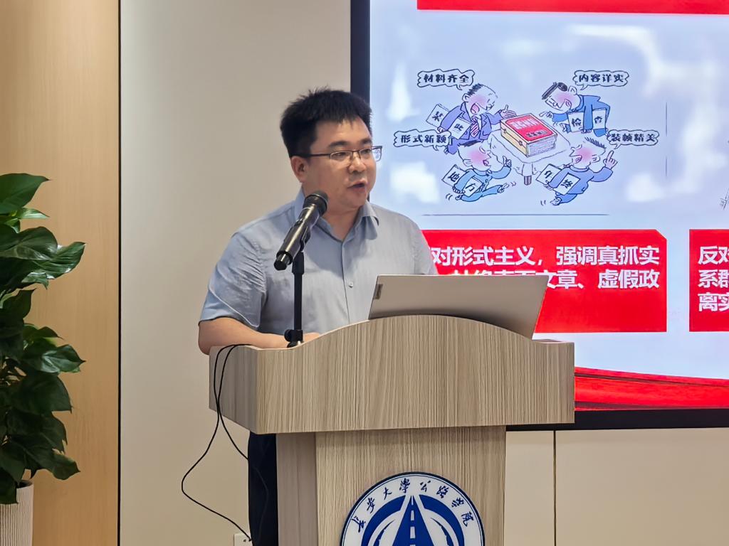 6月19日,买球体育官方网站面向全体教职工开展深入贯彻中央八项规定精神学习教育专题党课。此次党课以线下和线上形式结合开展,由院党委书记张久鹏主讲。学院领导班子成员、教工党支部书记、系(中心)主任、科级干部在北校区弘毅大厦六层第三会议室参加,其他教职工线上参会学习。
