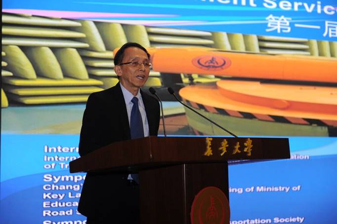 Professor T.F.Fwa, Academician of Singapore Academy of Engineering and Distinguished Professor of the School of Highway, giving a speech