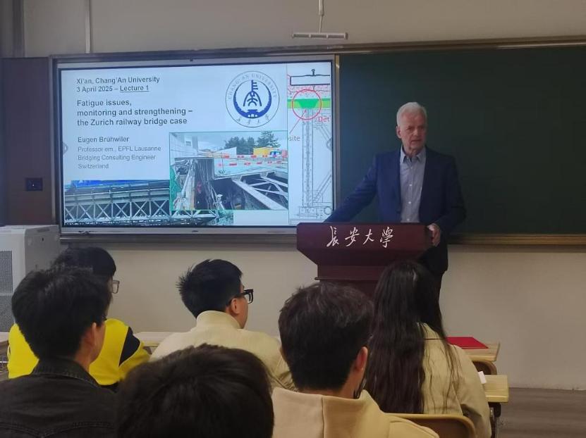 On April 3, Professor Brühwiler delivered two academic lectures titled "Fatigue Issues, Monitoring and Strengthening – The Zurich Railway Bridge Case" and "UHPFRC for the Improvement of Reinforced Concrete Bridges." Faculty members from the Bridge Engineering Department and nearly 40 graduate students attended the lectures. Participants engaged in in-depth discussions and exchanges with Professor Brühwiler on topics such as new technologies for strengthening steel bridges and the latest research and practical advancements in UHPFRC composite bridge structures.