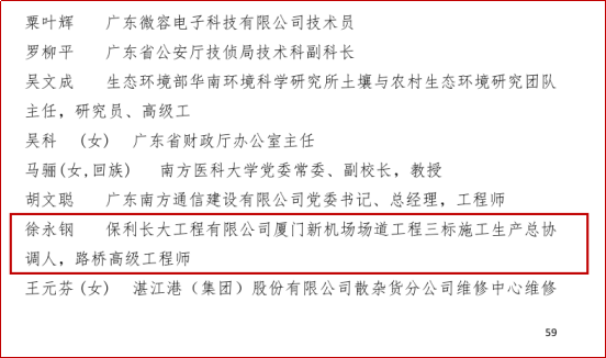 2017年3月,获评广东省公路学会“首届广东省优秀公路工程师”称号;