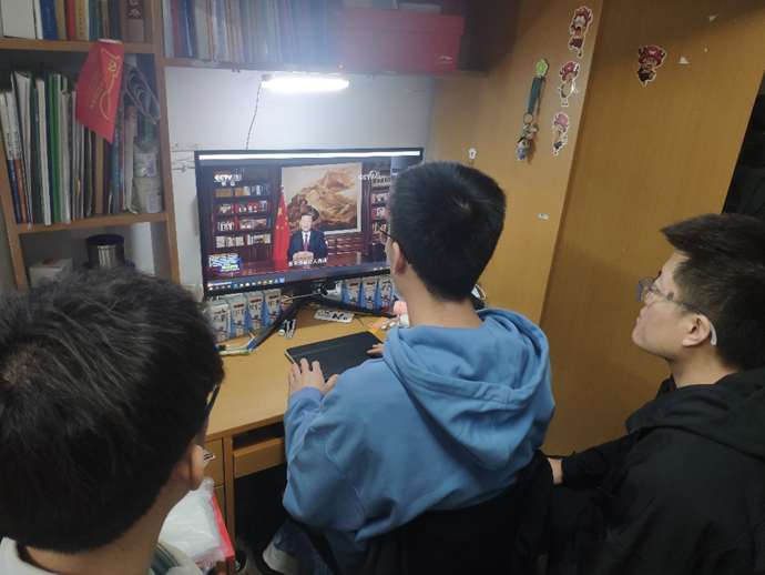 硕1914党支部孙浩珲与舍友一同观看并热议习近平总书记新年贺词