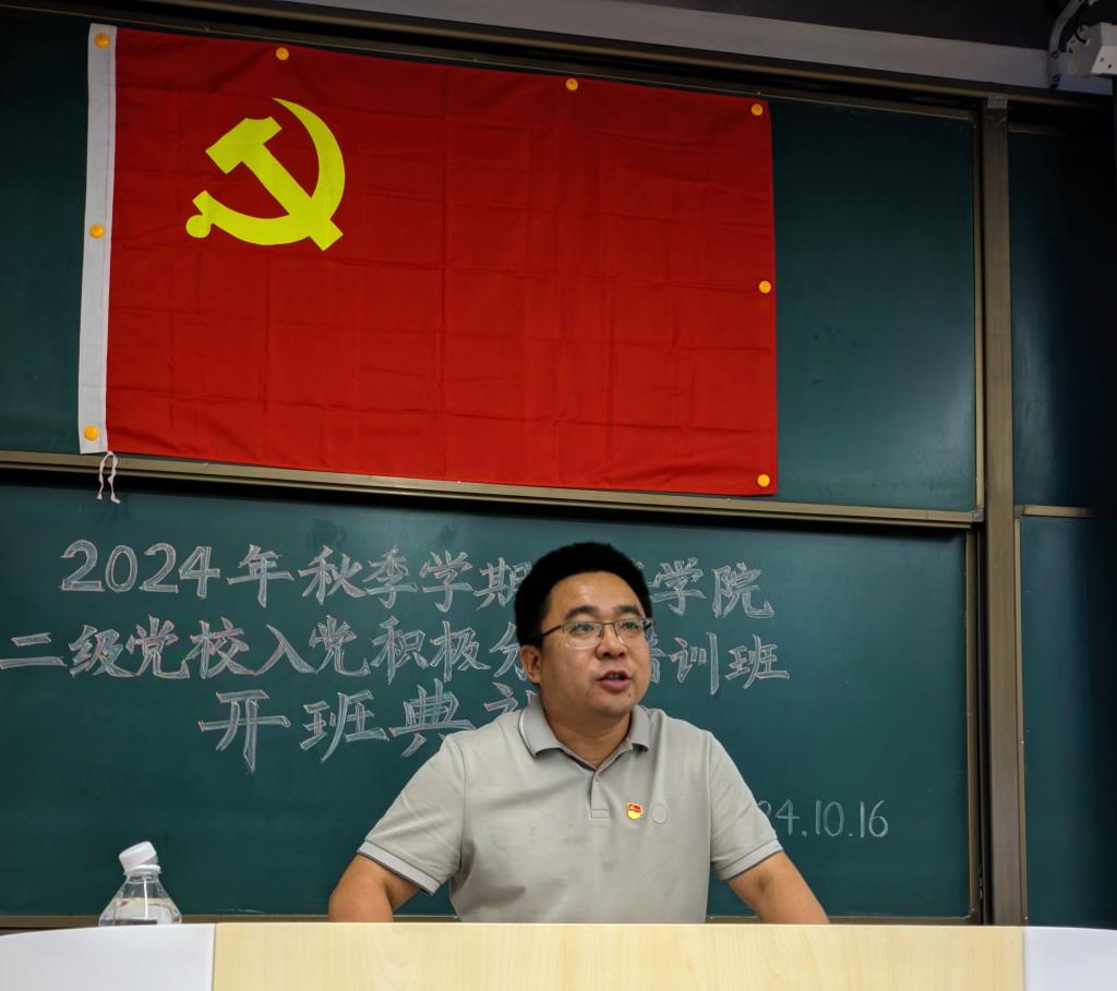 2024年秋季学期买球体育官方网站二级党校入党积极分子培训班开班典礼于10月16日在WH1307教室举行。买球体育官方网站党委书记张久鹏、党委正处级组织员廖谦、党委副书记贾历波、学办主任卢毅、团委副书记王达、全体辅导员及57名受训学员参加此次典礼。典礼由副班主任刘亦澜主持。