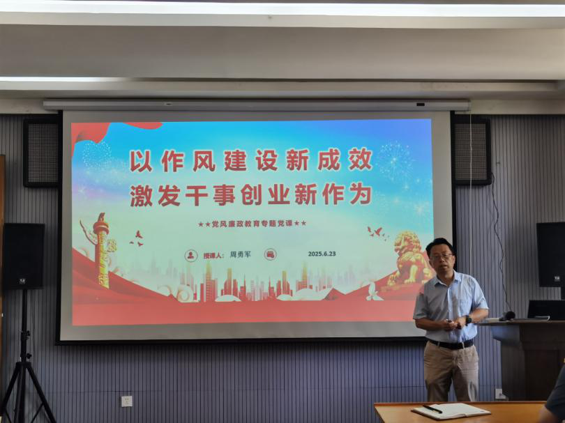 桥梁工程系第一党支部书记周勇军从“深刻领悟中央八项规定精神的重要内涵”,“深刻认识加强党的作风建设的重大意义”和“以自我革命精神推进党的作风建设”三个方面与桥梁系实际情况相结合,全面解读以作风建设新成效激发干事创业新作为的深刻内涵。他讲到,党员教师应始终保持求真务实的工作作风,将中央八项规定精神融入贯彻到教学、科研和社会服务的工作细节中,用实际行动践行教育工作者的初心使命。