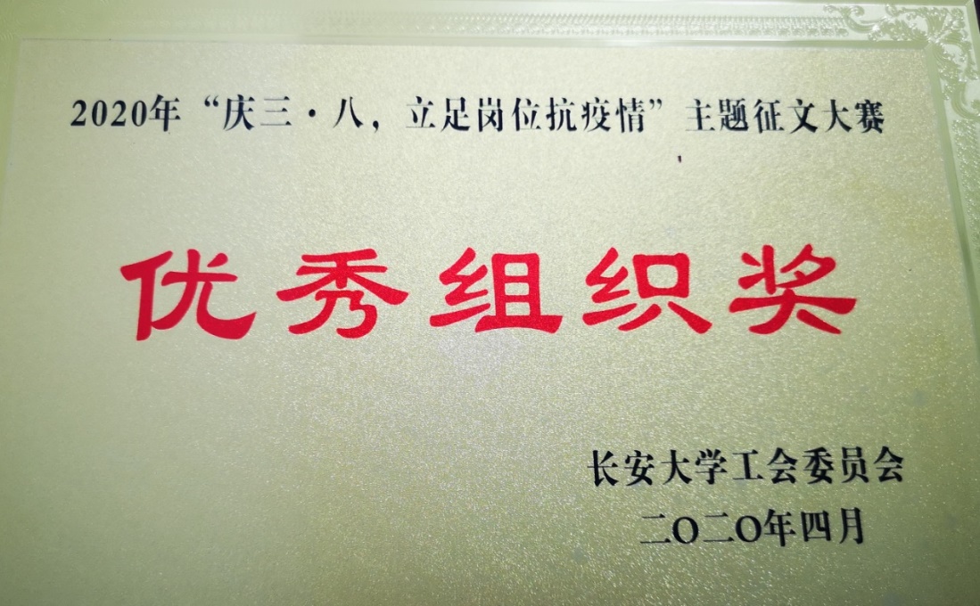 学院工会主席陈红老师接到通知后高度重视,第一时间在学院女教工微信群里转发通知,鼓励买球体育女教职工在繁忙的在线教学、管理工作之余积极参与此项活动。学院女工委员路西利老师充分挖掘买球体育女教职工在抗疫期间的典型人物和先进事例,有针对性的动员和联系相关老师,并和他们一起总结、凝练和完善。老师们所写文章主题鲜明、图文并茂,生动形象地讲述了奋战在抗击疫情、停课不停教中的先进典型和感人事迹。最终经专家评审荣获一等奖一篇、二等奖一篇、优秀奖两篇,买球体育被校工会授予“优秀组织奖”